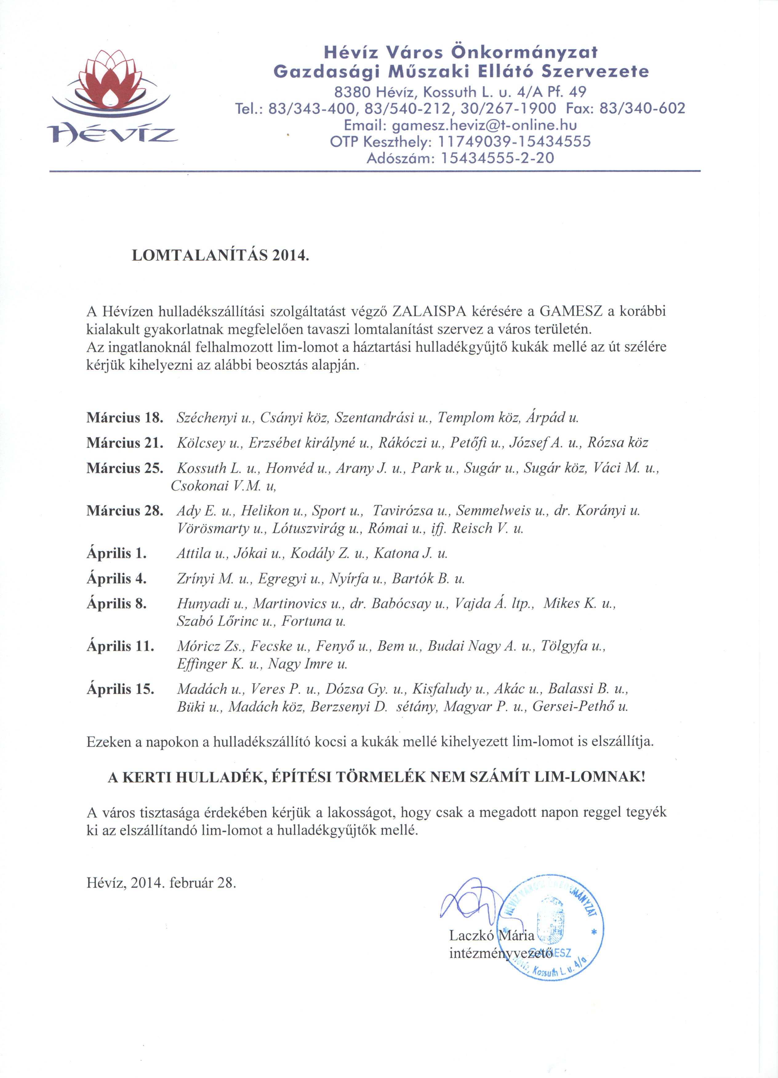 Hévízi Polgármesteri Hivatal, 8380 Hévíz, Kossuth Lajos u. 1.